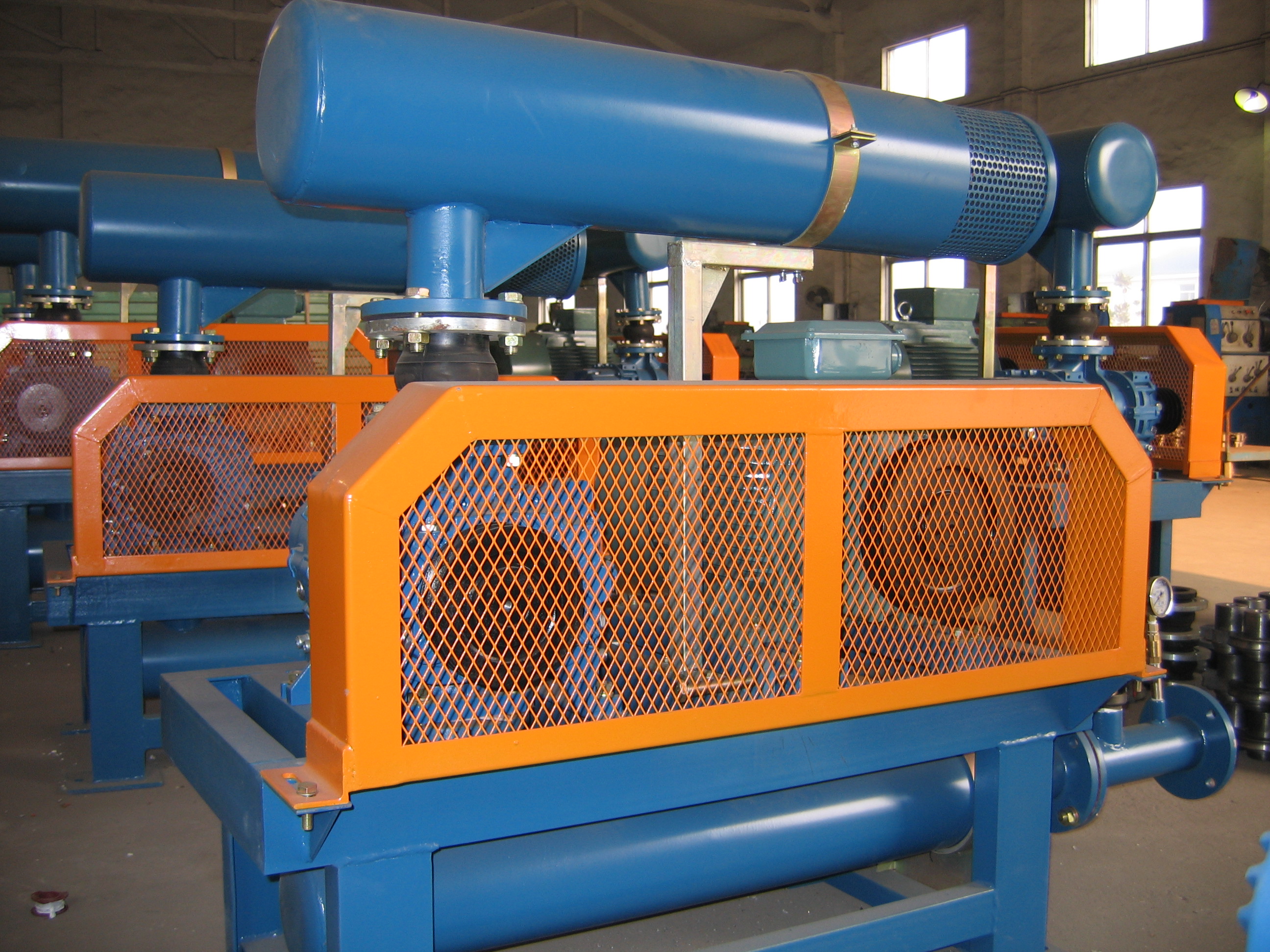 在機殼內部設置有兩組,互朝相反方向轉動三葉羅茨的轉子,轉子與轉子,及轉子與機殼間僅留有極小的間隙。當其中一轉子葉端經過吸入口時,具